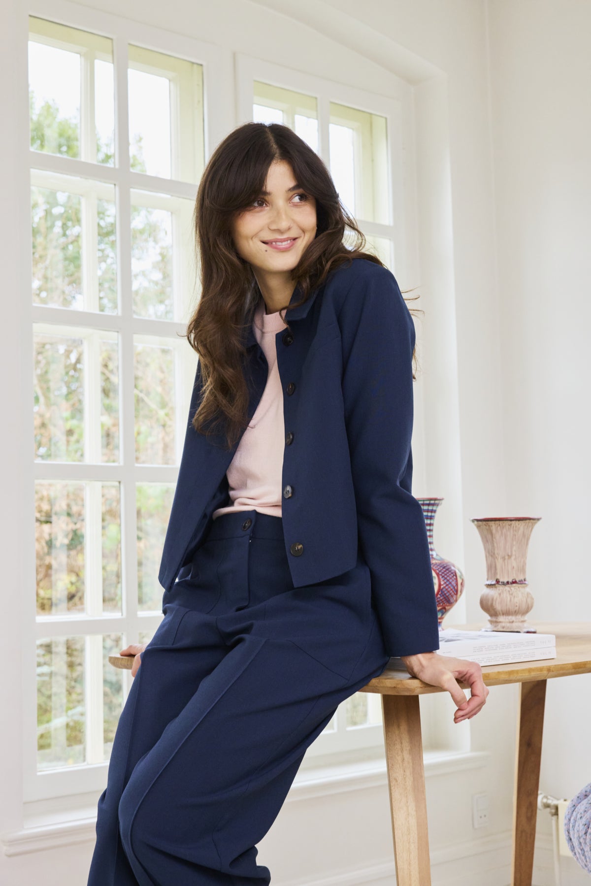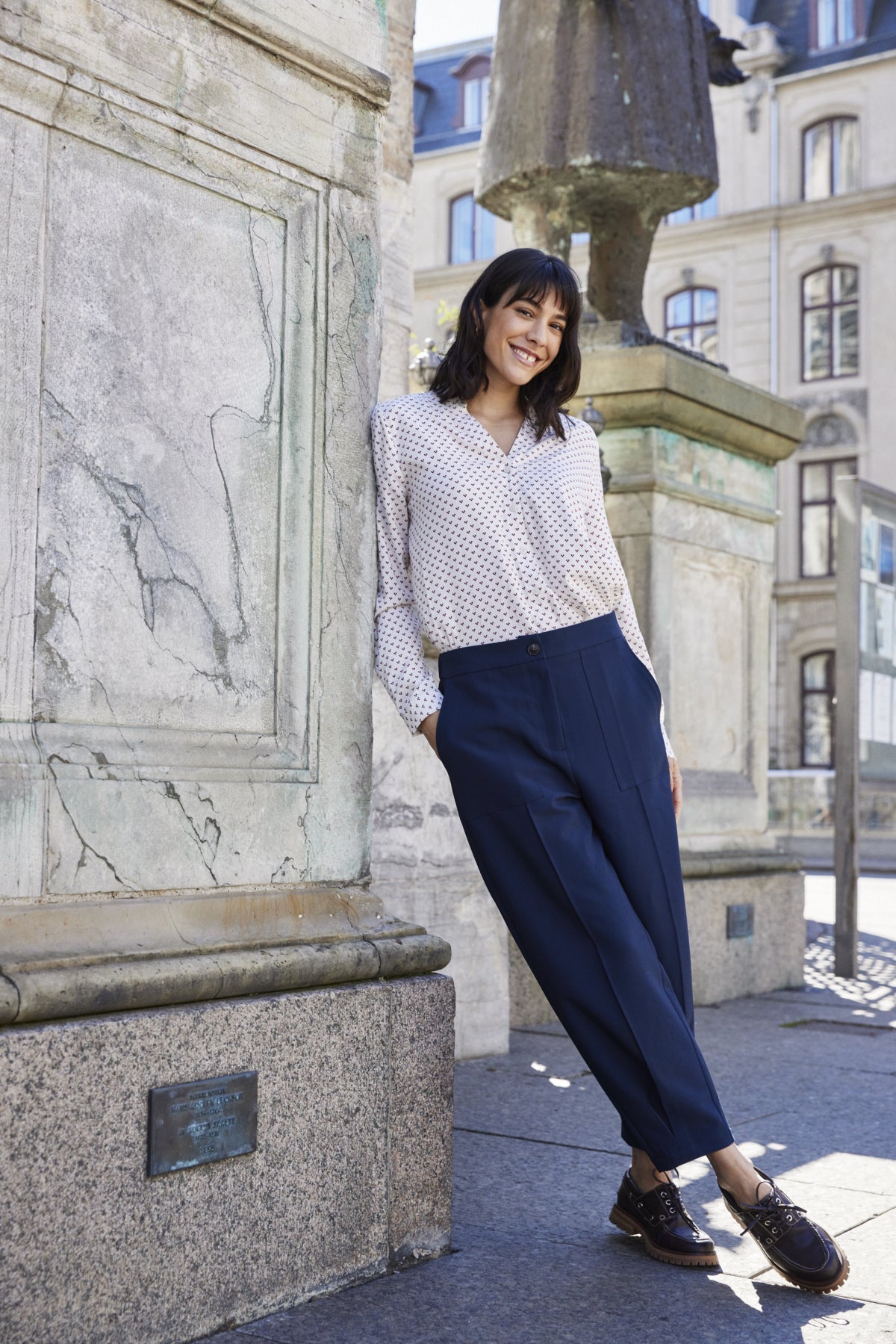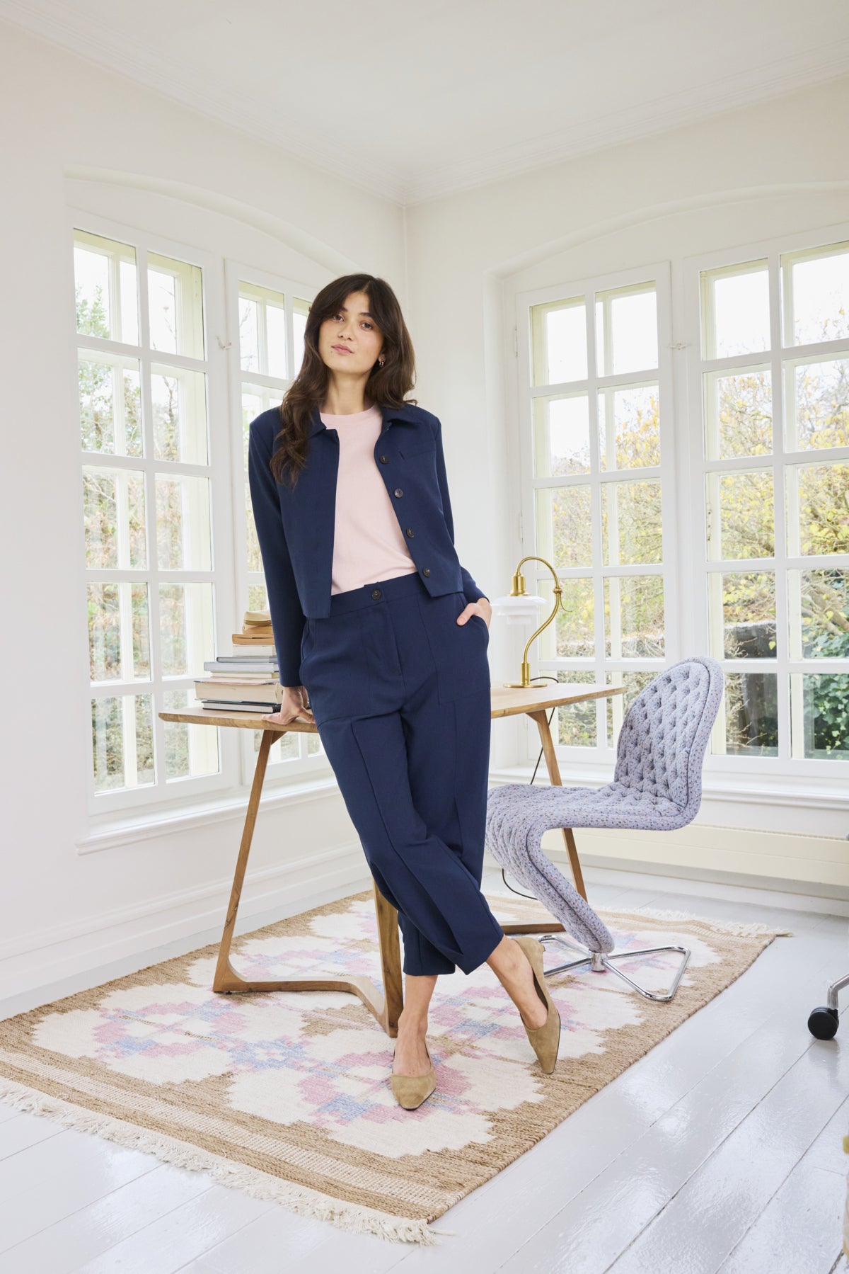 Fabric look: Soft, fluid fabric that drapes nicely and feels comfortable for all-day wear