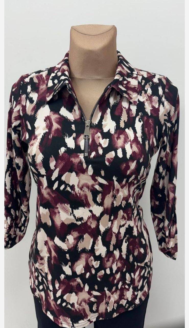 • Abstract animal-inspired pattern in rich burgundy, black, and cream tones.