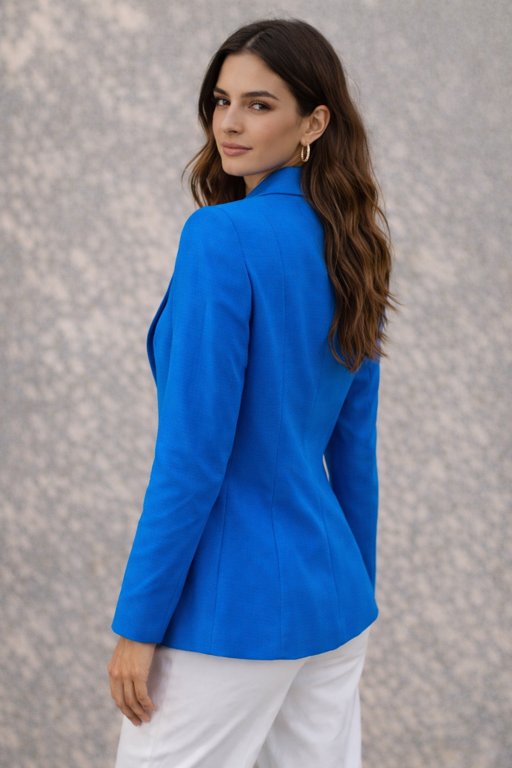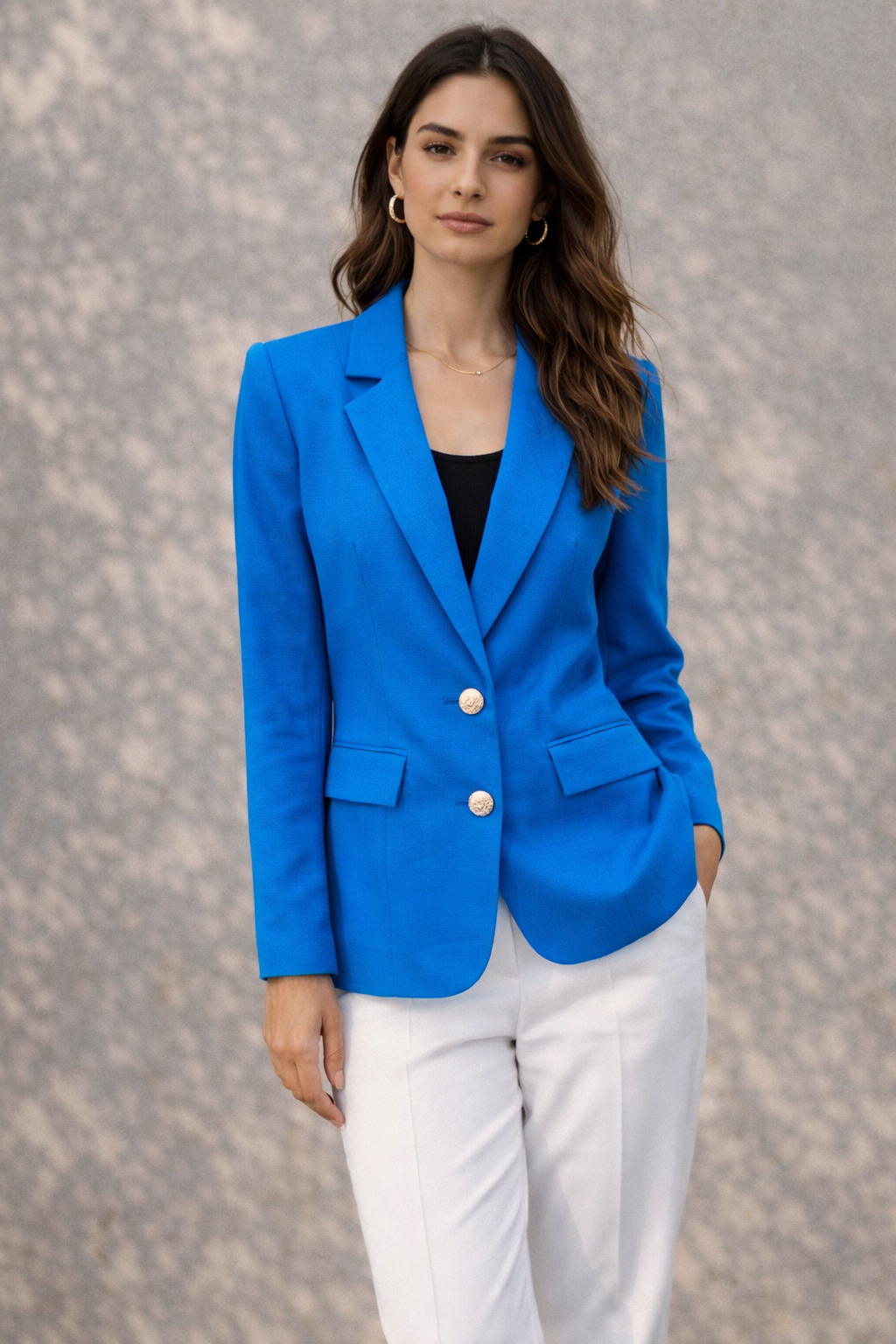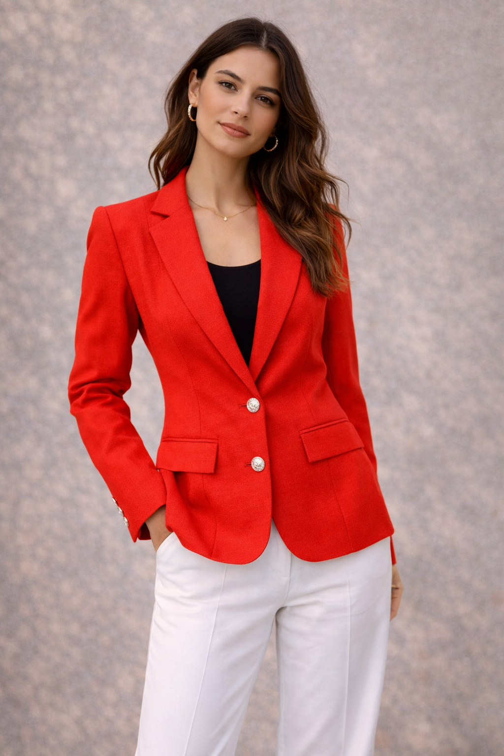 Perfect for elevating both office wear and evening outfits, this blazer combines timeless tailoring with bold colour.