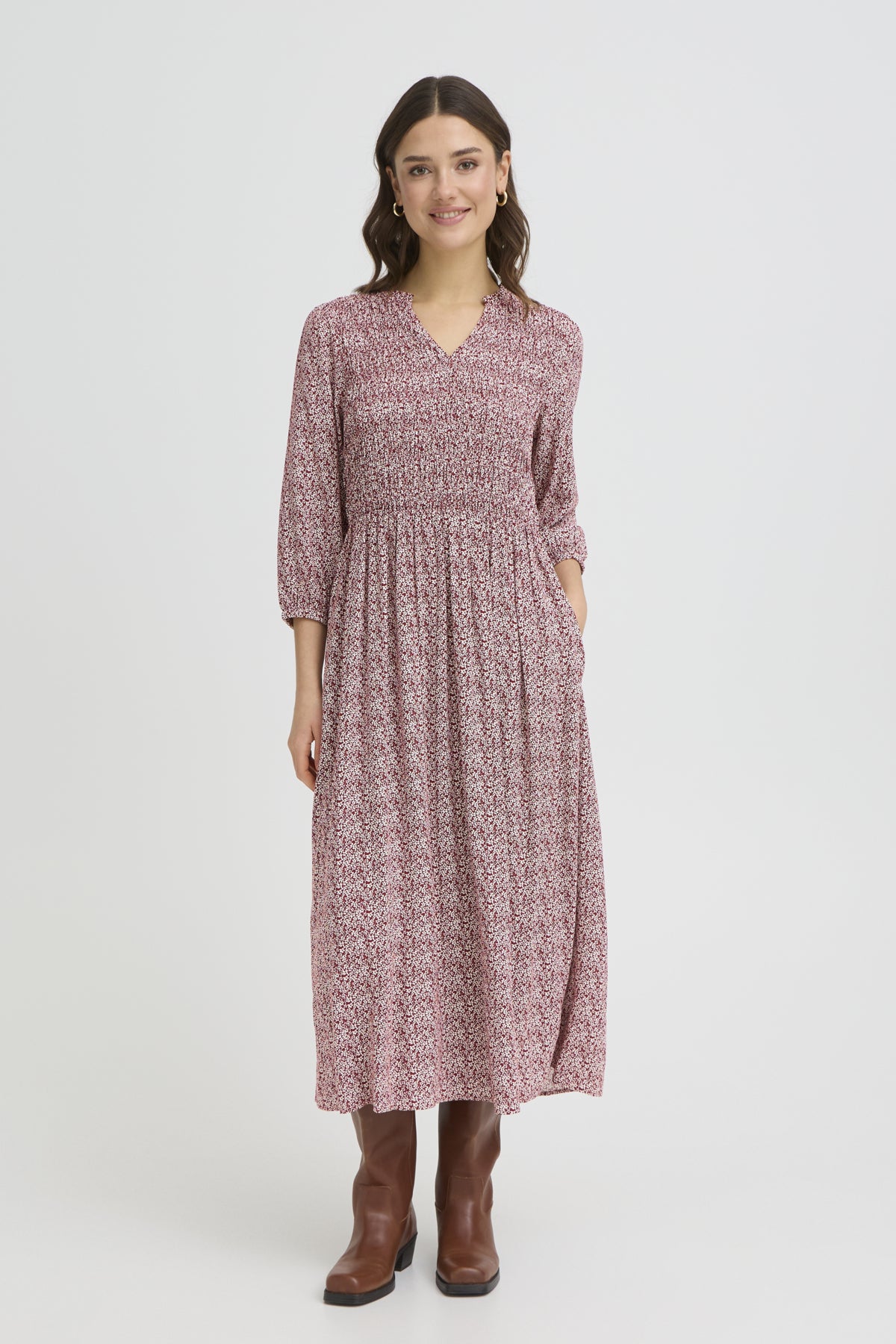 This beautifully feminine midi dress features a delicate all-over print in soft pink tones, perfect for effortless everyday wear. Designed with a flattering V-neckline and gently gathered waist, it creates a relaxed yet elegant silhouette. The three-quarter length sleeves add comfort and versatility, while the flowing skirt moves beautifully with every step. Finished with practical side pockets, this dress is ideal for dressing up with boots or keeping casual with trainers for easy, all-day style.