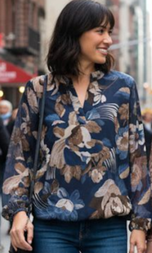 • Pattern: Large floral print in earthy tones, creating a statement look.