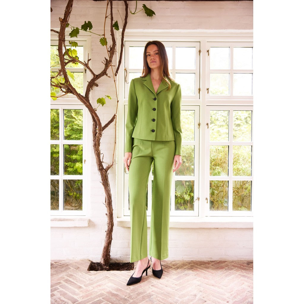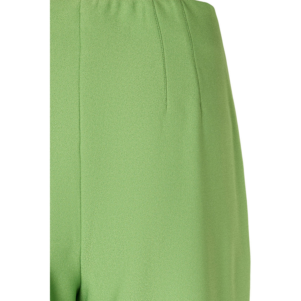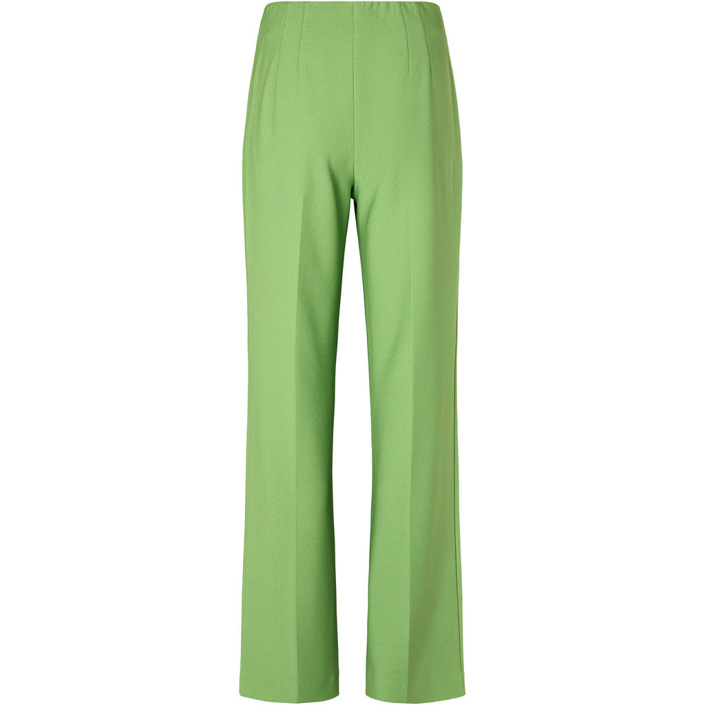 These trousers are a sleek, tailored wide-leg style in a fresh apple green shade.