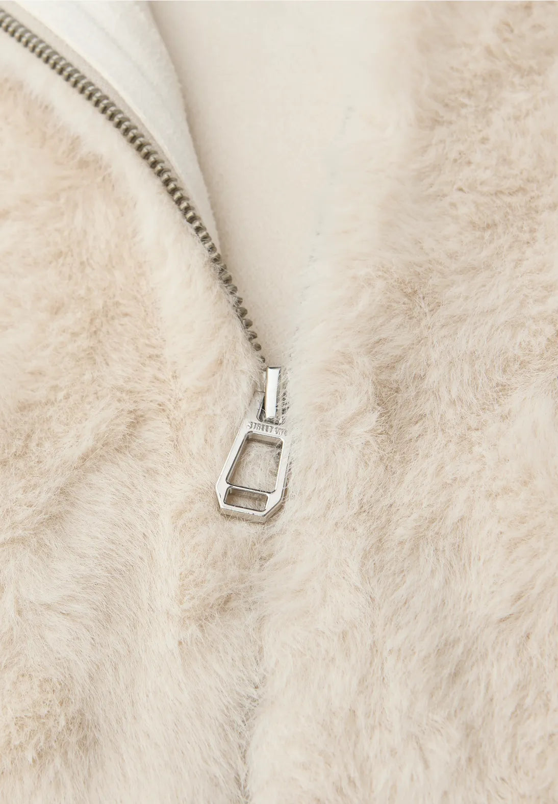 This Street One women's fake fur coat impresses with its particularly cozy quality and feminine look. A hood and patch pockets underscore the casual, fashionable style. The zipper provides practical comfort—ideal for chilly days with a feel-good factor.