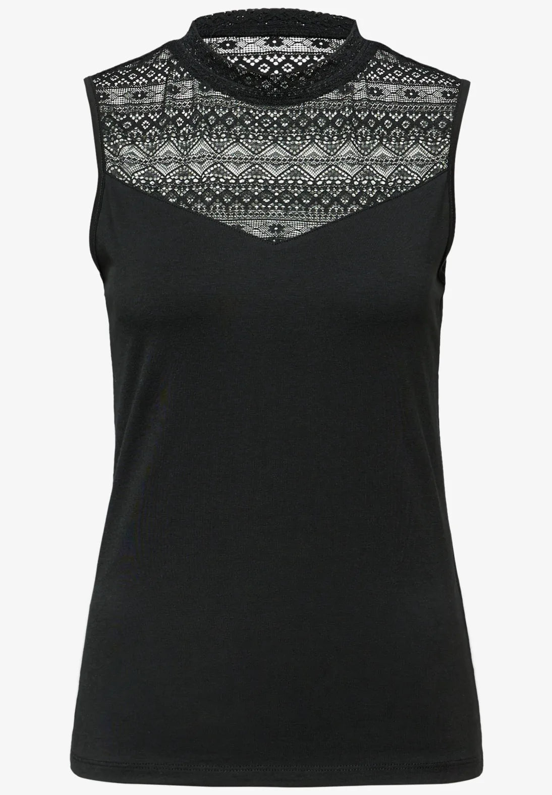 This sleeveless top from Street One for women features a subtle lace detail at the round neckline. The solid color lends itself to versatile combinations—ideal as a feminine basic for layering or worn solo.