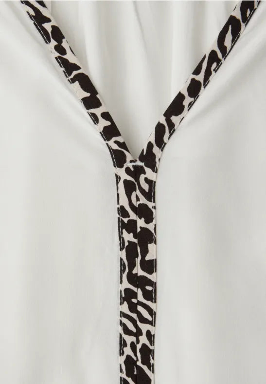 This women's tunic from Street One features stylish leopard-print tape details. The split neck and gently rounded hem give the design a relaxed silhouette. Made from soft viscose, it offers a comfortably light feel – perfect for feminine everyday looks.