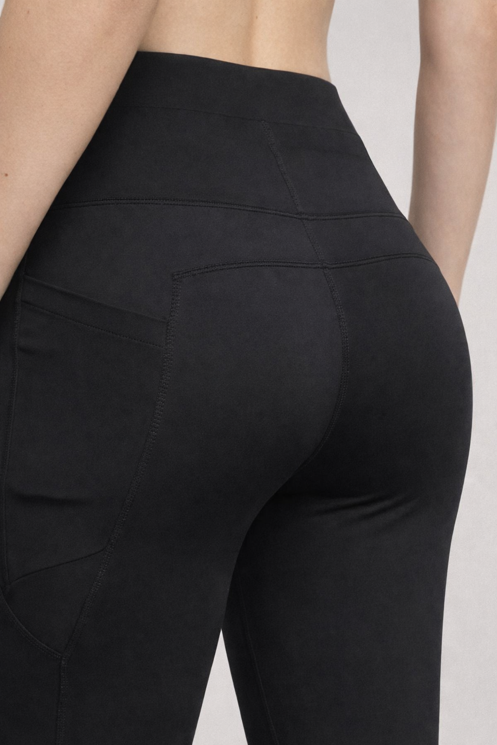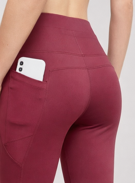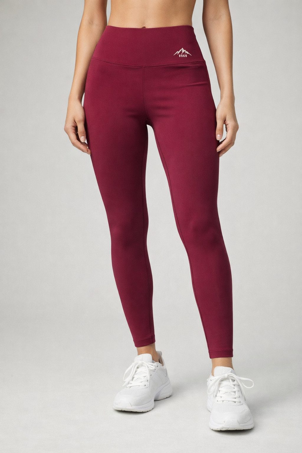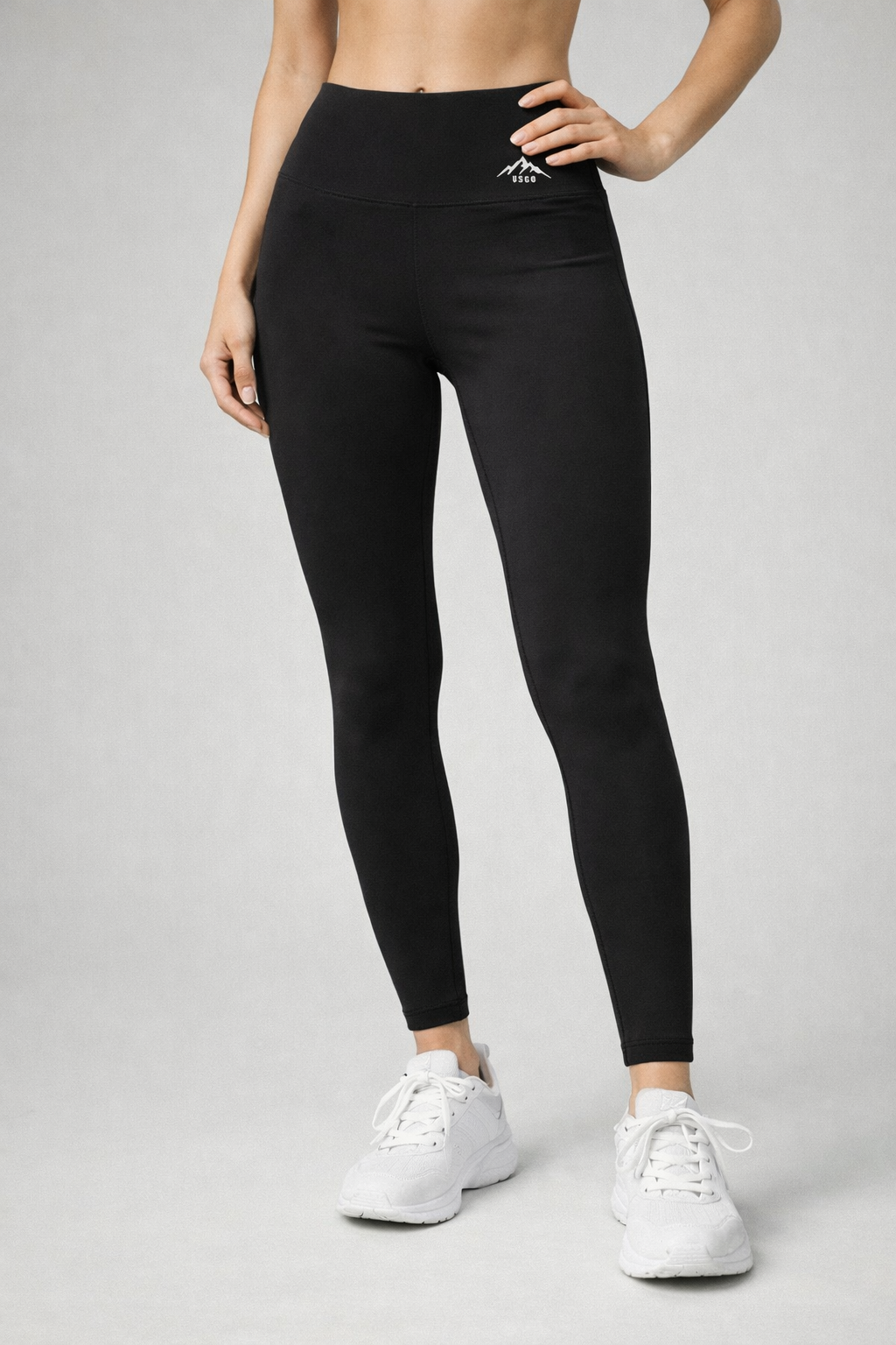 These leggings are a high-waisted, form-fitting athletic style designed for both comfort and performance. They are made from a smooth, stretchy fabric that contours closely to the body, providing a sleek and supportive fit. The waistband is wide and structured, offering tummy support without digging in.