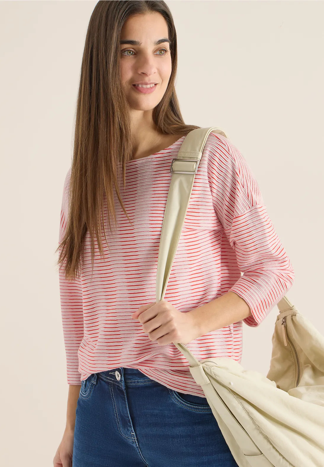 This women's shirt from CECIL combines a striped pattern with a wavy texture for a modern look. The soft cotton-modal blend offers exceptional comfort for everyday wear. Ideal for relaxed styles with a sporty touch.
